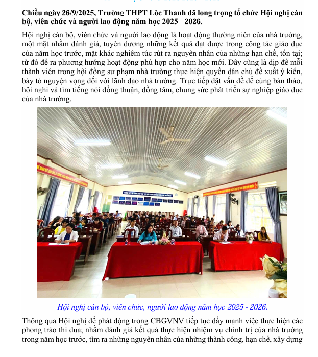 HỘI NGHỊ CÁN BỘ, VIÊN CHỨC, NGƯỜI LAO ĐỘNG NĂM HỌC 2025-2026