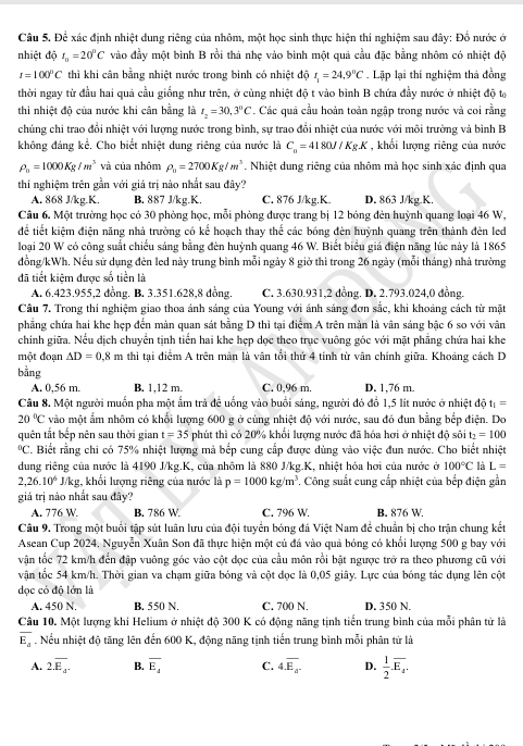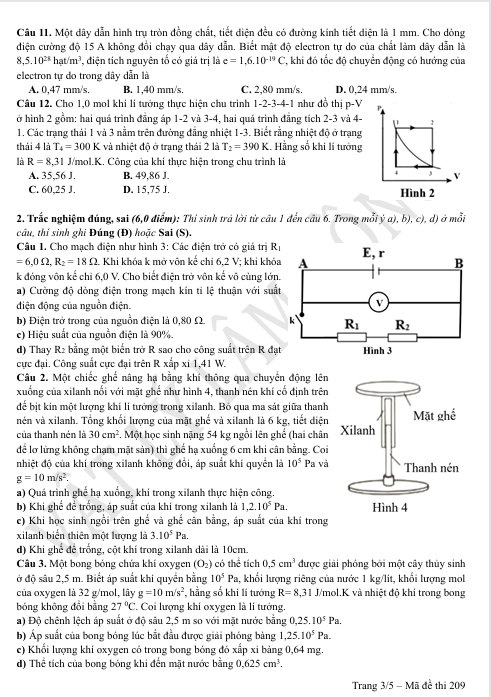 ĐỀ THI HỌC SINH GIỎI CẤP TỈNH MÔN vẬT LÍ NĂM 2024-2025