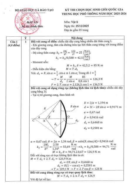 ĐỀ VÀ ĐÁP ÁN CHI TIẾT THI HỌC SINH GIỎI QUỐC GIA MÔN VẬT LÍ 2026