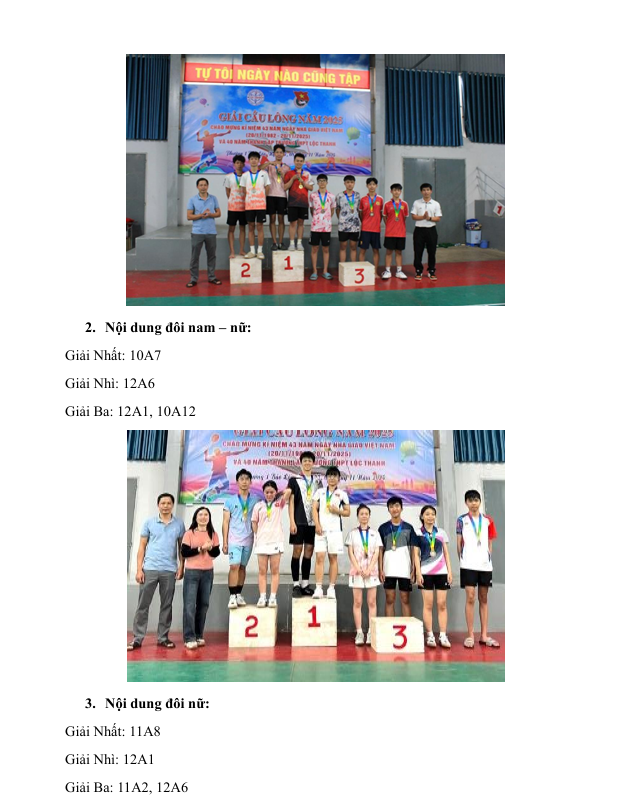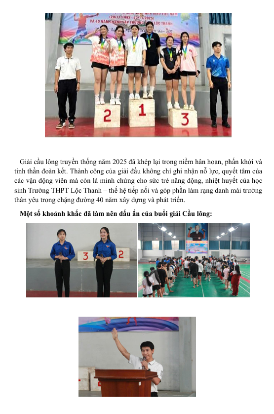 GIẢI CẦU LÔNG TRUYỀN THỐNG TRƯỜNG THPT LỘC THANH NĂM 2025