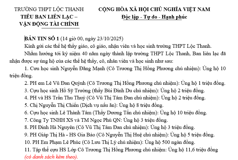 HƯỚNG TỚI KỶ NIỆM 40 NĂM NGÀY THÀNH LẬP TRƯỜNG THPT LỘC THANH