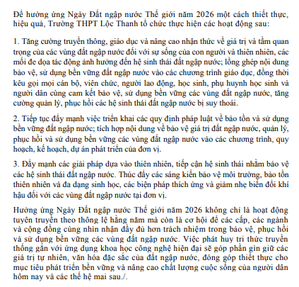 HƯỞNG ỨNG NGÀY ĐẤT NGẬP NƯỚC THẾ GIỚI NĂM 2026
