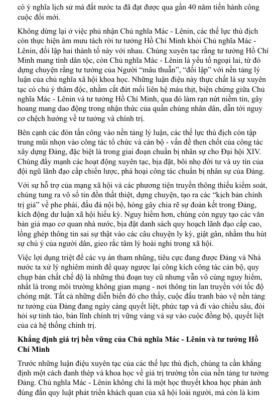 Kiên định bảo vệ nền tảng tư tưởng của Đảng, đập tan mọi âm mưu “diễn biến hòa bình”