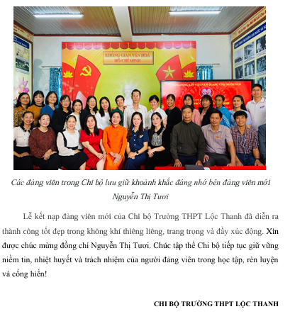 LỄ KẾT NẠP ĐẢNG VIÊN MỚI TẠI TRƯỜNG THPT LỘC THANH