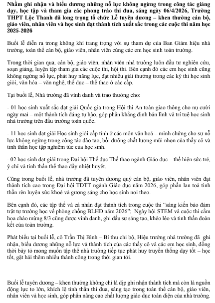 TUỔI TRẺ TRƯỜNG THPT LỘC THANH CHINH PHỤC CUỘC THI MOS CẤP TỈNH