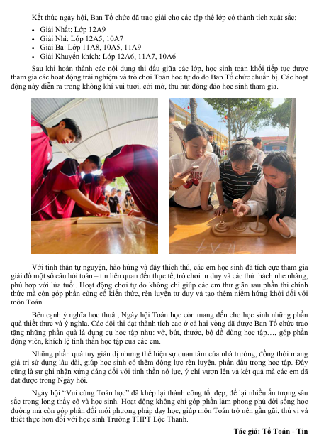 NGÀY HỘI “VUI CÙNG TOÁN HỌC” – SÂN CHƠI TRÍ TUỆ ĐẦY HỨNG KHỞI TẠI TRƯỜNG THPT LỘC THANH