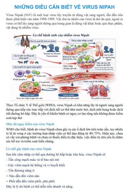 NHỮNG ĐIỀU CẦN BIẾT VỀ VIRUS NIPAH