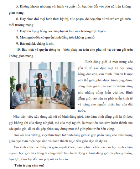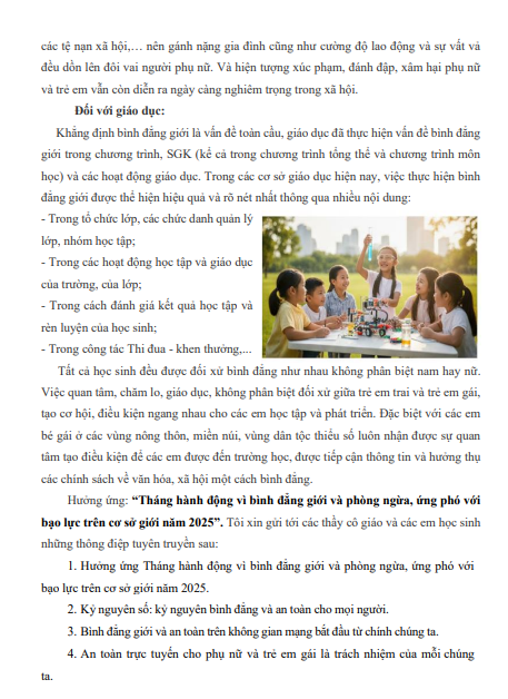 NỘI DUNG TUYÊN TRUYỀN VỀ BÌNH ĐẲNG GIỚI VÀ PHÒNG CHỐNG BẠO LỰC TRÊN CƠ SỞ GIỚI