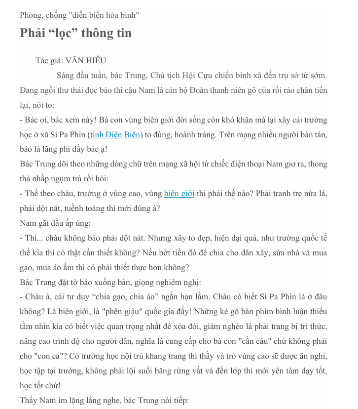 Phòng, chống "diễn biến hòa bình" Phải “lọc” thông tin