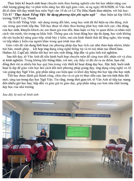 TIẾT MINH HỌA MÔN NGỮ VĂN 10 – CHUYÊN ĐỀ ĐỔI MỚI SINH HOẠT CHUYÊN MÔN
