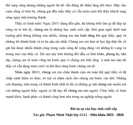 Nguồn tin: Bài tự sự của học sinh cuối cấp Tác giả: Phạm Minh Nhật lớp 12A1 - Niên khóa 2023 - 2026